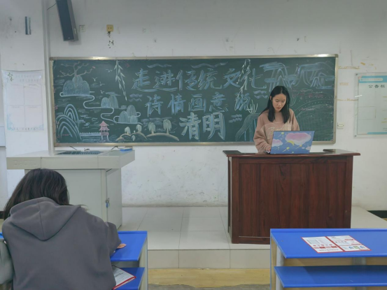 课上,团支书结合视频、图文资料向在座同学介绍了清明节的起源,与同学们共同讨论清明节的传统习俗,通过讲述革命先烈的故事,引导青年学生在慎终追远、缅怀先辈中走近传统、尊重传统。同时,团支书通过说、唱、演的形式将《清明》等诗词展示出来,让同学们感受清明时的景象以及诗人对人生和生命的感悟和思考。会后,各团支部进行了充分的讨论交流,同学们纷纷表示,在以后的学习和生活中,会在缅怀先辈的情怀中传承中华优秀传统文化,主动担起传承中华民族优秀传统文化的责任与重担,争做文化传承者。