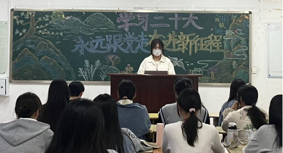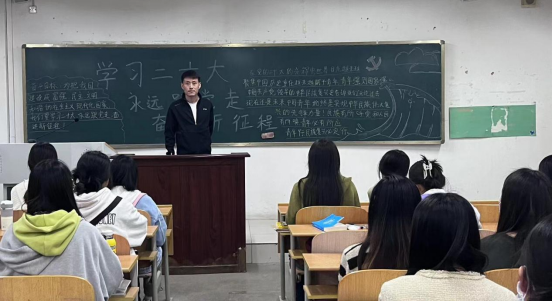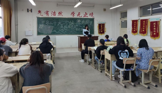 活动中,团支书带领同学们深入学习党的二十大精神,通过理论学习、模拟政协提案、知识竞答、交流分享等多种方式,让全体共青团员深刻领会新时代新征程党和国家事业的重大战略部署,深刻领会坚持党的全面领导和全面从严治党的重大部署。随后,团支书带领同学们重温党的二十大报告,引领青年学子感悟党对青年寄予的厚望和时代赋予青年的光荣使命。互动环节中,同学们围绕民生保障、文化传承、生态文明、大学生成长发展等方面畅谈体会与见解,积极参与知识竞答。在游戏的欢快气氛中,同学们对党的二十大、对“两会”有了更深层次的理解。
