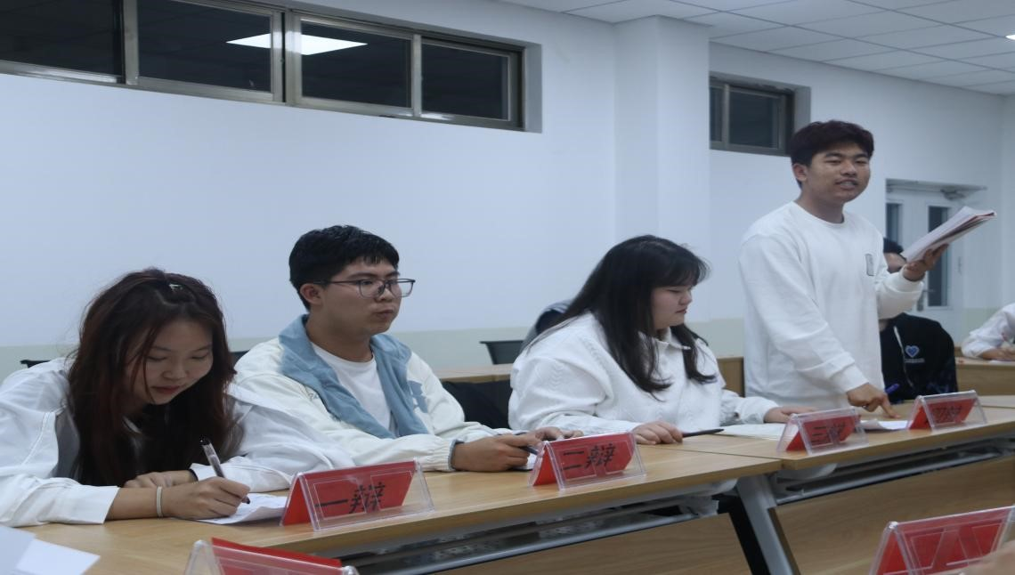 为展示大学生的青春风采,增进同学们之间的思想交流。由儒商学院团委学生会主办,论辩爱好者之家承办的“奋进新征程,强国青年说”儒商学院大学生辩论赛复赛于10月13日在3B604顺利举行。 本次辩论赛复赛分为五场。前两场,辩手们就”自杀者杀死的是过去还是未来”辩题展开激烈讨论。后三场,辩手们就 “双标的人生是不是虚伪的”辩题产开激烈辩论。