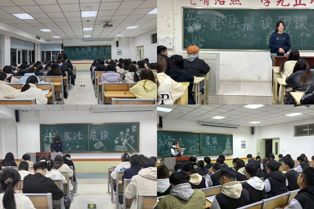 12月4号早晨,各班团支部参加“国家宪法日”主题升旗仪式。我校千余名学生代表齐聚圣贤广场,通过国旗下的演讲、宪法宣誓等形式向宪法致敬。举办宪法晨读,师生齐声朗读《中华人民共和国宪法》部分条款,共同合唱《宪法伴我们成长》歌曲,将法治的种子根植于心中。