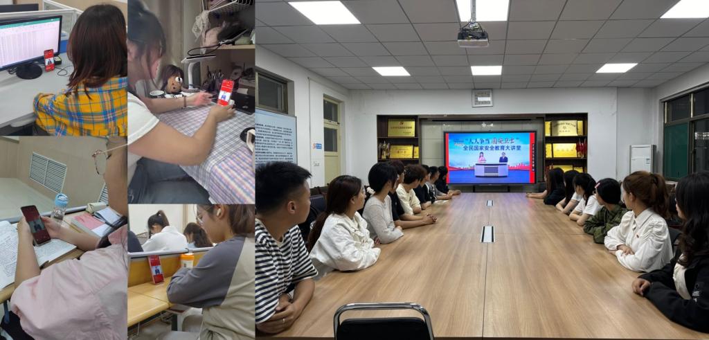 在活动过程中,23级主要学生干部在会议室集中观看,其余学生线下观看国家安全教育直播视频。本次国家安全教育公益普法课邀请中国社科院法学研究所所长、中国社会科学院大学法学院院长莫纪宏,中国社科院李忠、刘小妹、支振锋,中国刑事警察学院杨海涛、北京外国语大学郑曦等知名法学专家开展专题讲座,内容包括总体国家安全观、国家安全法、反间谍法、保守国家秘密法等众多国家安全方面内容。普及了国家安全的基本知识,同学们进一步了解了国家安全法律体系,熟知了国家安全工作力度,谨记国家安全与个人安全的紧密联系,深刻理解“国家安全离你有多近”,激发了同学们的爱国情怀,加强对国家安全认识的重要性。