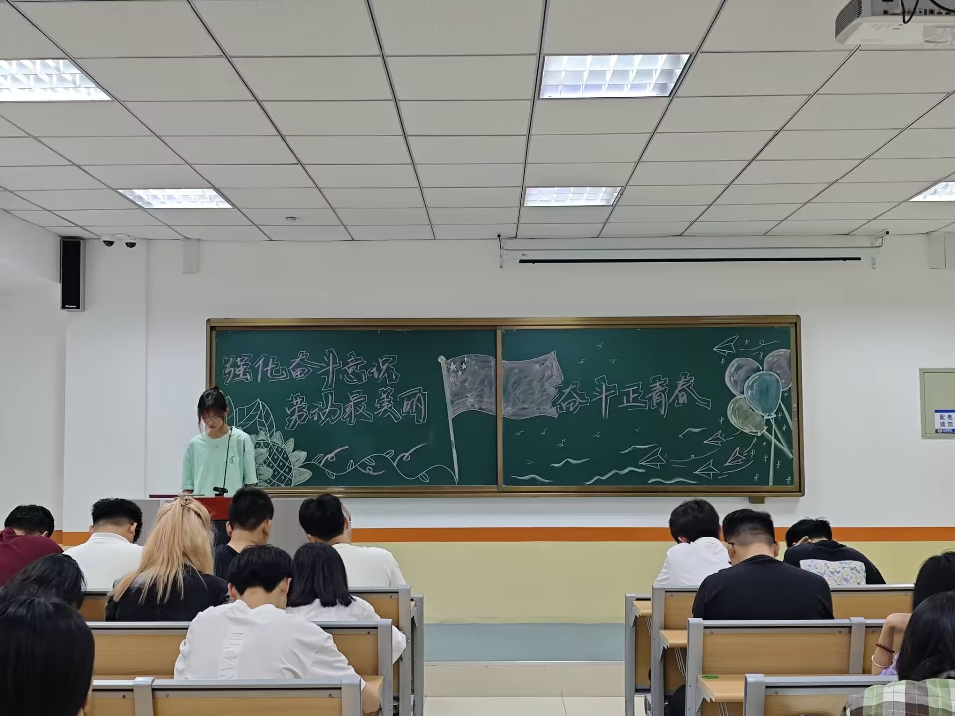 本次团日活动中,由团支书组织开展强化奋斗意识主题教育系列活动。团支书首先带领同学们学习领会习近平总书记关于劳动教育的重要论述,呼吁同学们向中国青年五四奖章、全国“两优两红”等先进典型榜样学习,随后团支书向同学们分享邓稼先、袁隆平、王进喜三位杰出人物的奋斗历程及劳动精神,鼓励同学们树立正确的劳动观念和远大目标,同时组织同学们展示劳动技能,培养其认真的工作态度,让同学们体会到劳动的乐趣和成就感,培养奉献精神,活动。最后,同学们纷纷表示要将知识内化于心,外化于行,提高自身文化素质,勇于投入到劳动实践中去。