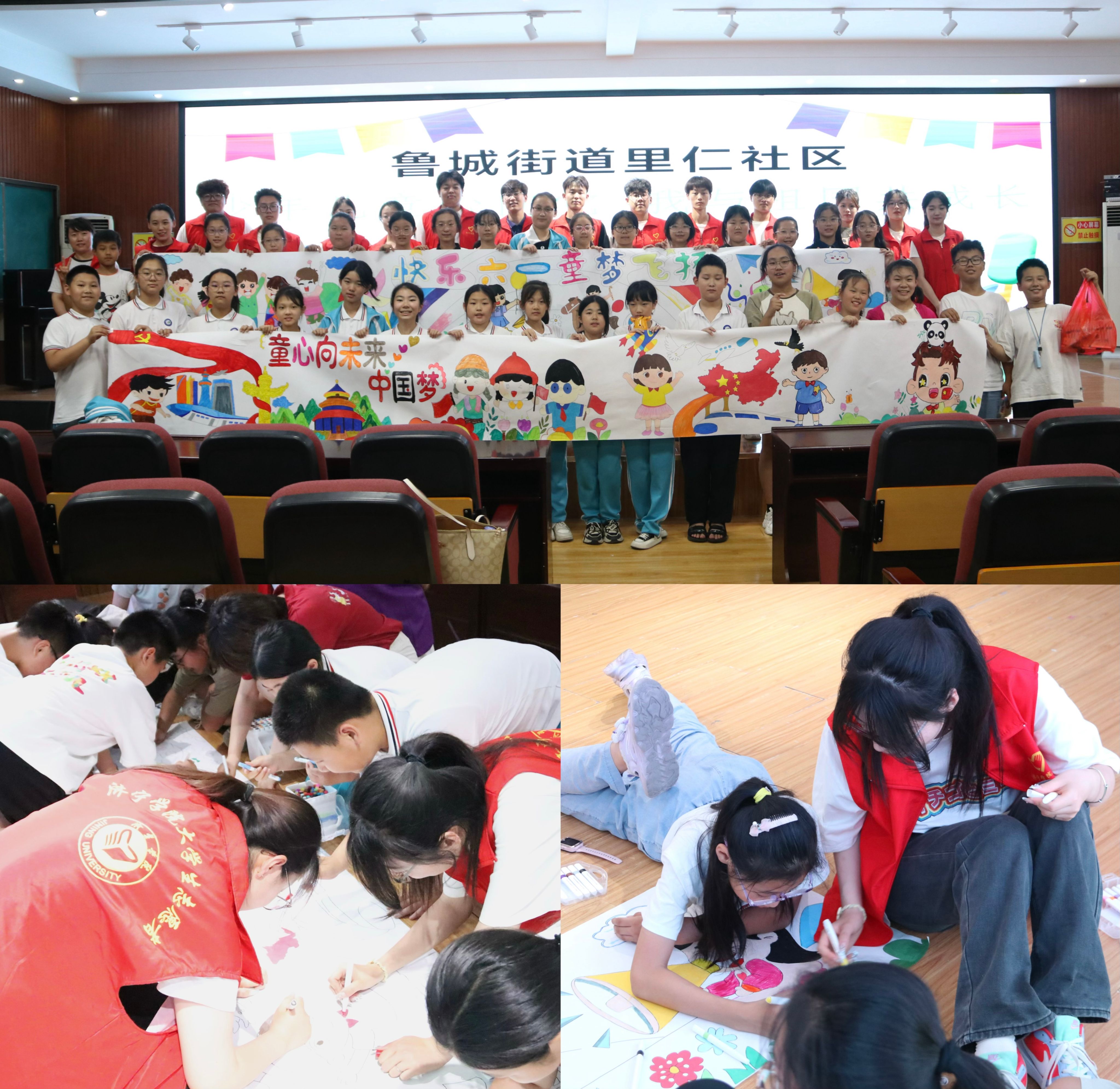 校园安全教育宣传活动结束后,为给孩子们送上“六一”儿童节祝福,里仁社区和志愿者们精心打造了“少年儿童心向党,我与祖国共成长”手绘活动。长卷徐徐铺开,孩子们热情高涨,拿起画笔用稚嫩的小手细心涂画,飘扬的国旗、升腾的火箭、生动形象的卡通人物……志愿者们和孩子们共同体验合作绘画的乐趣,表达着对祖国的祝福,对美好明天的希望。
