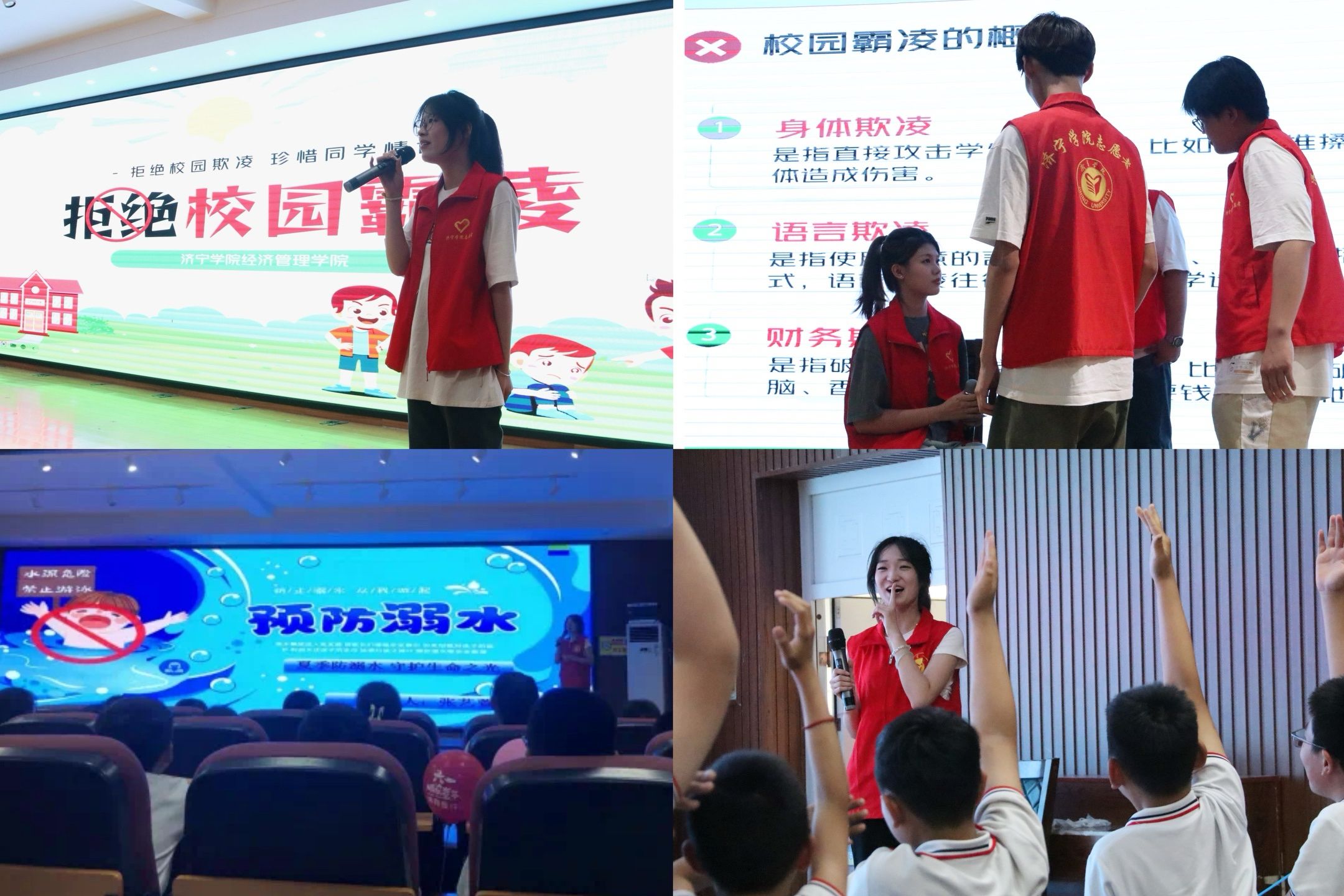 活动现场,伟德国际1949始于英国的志愿者们重点围绕“反霸凌和防溺水”开展宣传教育。“反霸凌”志愿服务队通过组织收看预防校园霸凌警示教育片、主题宣讲、角色扮演、有奖知识竞赛等多种形式,为学生们科普防范校园霸凌安全知识,教育普及学生遇到孤立排挤、传播谣言等新型欺凌行为时如何保护自我的方法,呼吁学生们面对校园欺凌不做受害者、不做欺凌者、不做附和者和冷眼旁观者,增强安全意识与法律意识,提高自我保护意识和能力。“防溺水”志愿服务队以近年来发生的学生溺水事件警示案例为切入点,结合周边河道、危险水域等实际危险情况,提醒学生要切实增强溺水安全防范意识,教导孩子们牢记“六不两会”,尽量远离水域,确保安全,从源头上预防校园安全事件发生。