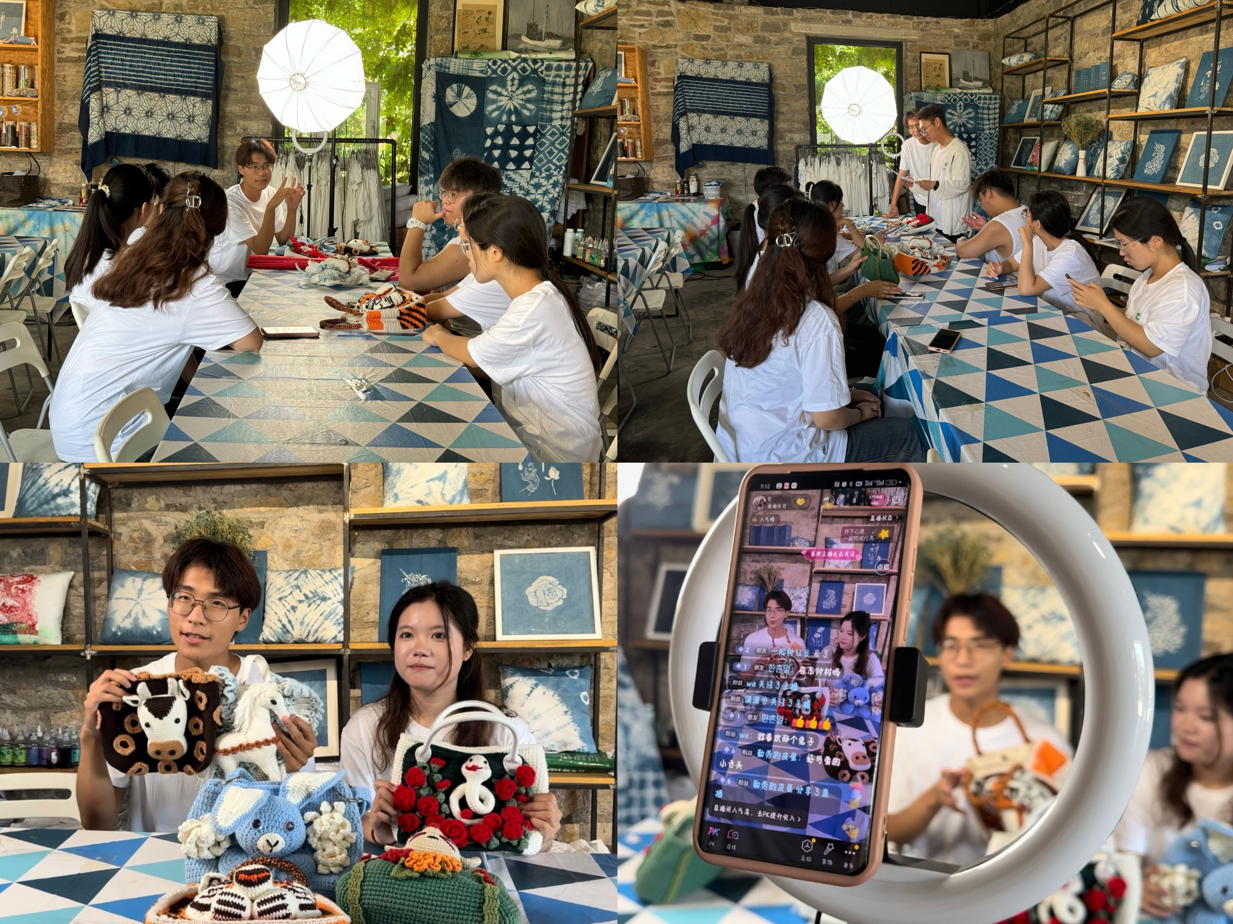 社会实践团队聚焦当地特色非遗钩针编织技艺,以电商直播赋能非遗文化,重点破解非遗编织品销售渠道相对局限的问题。根据调研情况,实践团召开了直播筹备会并分工协作,精心策划直播内容,确定直播展品,撰写直播文案,设计营销方案,并通过抖音平台开展了“云”直播活动。在直播过程中,观众们纷纷通过点赞、评论和分享的方式,表达了对非遗钩针编织的喜爱和支持。他们不仅被精美钩织图案和造型所吸引,更被背后所蕴含的乡村振兴故事所打动。团队成员们通过与观众的互动,让更多人了解了非遗钩针编制技艺的独特魅力,也激发了他们对传统文化的兴趣和热爱。