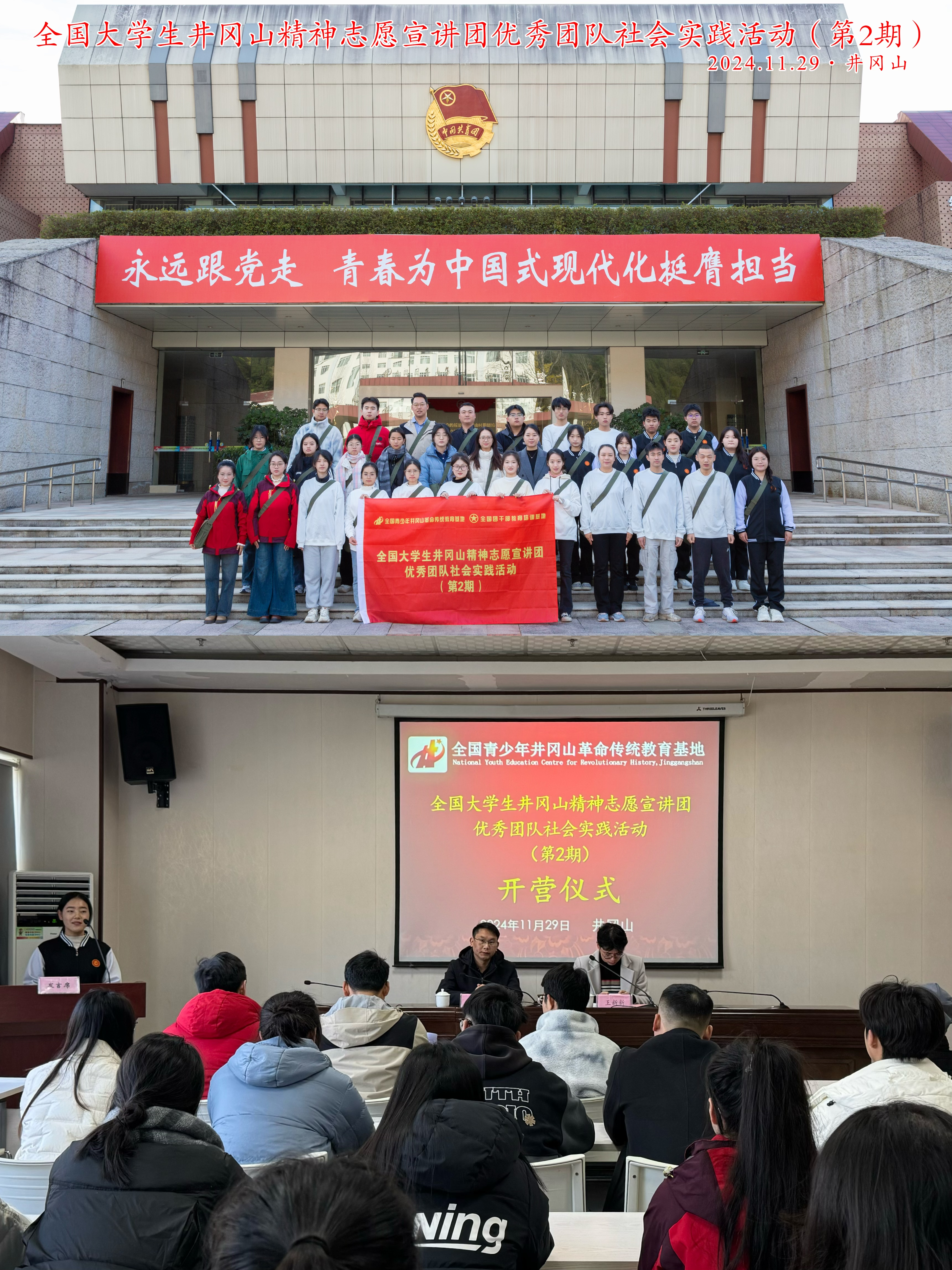 11月28日至12月3日,由团中央青年志愿者行动指导中心、全国青少年井冈山革命传统教育基地管理中心联合主办的全国大学生井冈山精神志愿宣讲团优秀团队社会实践活动在江西井冈山举行。我校大学生宣讲团作为2024年度全国优秀团队受邀参加活动,伟德国际1949始于英国团委书记、宣讲团指导老师袁芬和宣讲团成员共同参加活动。