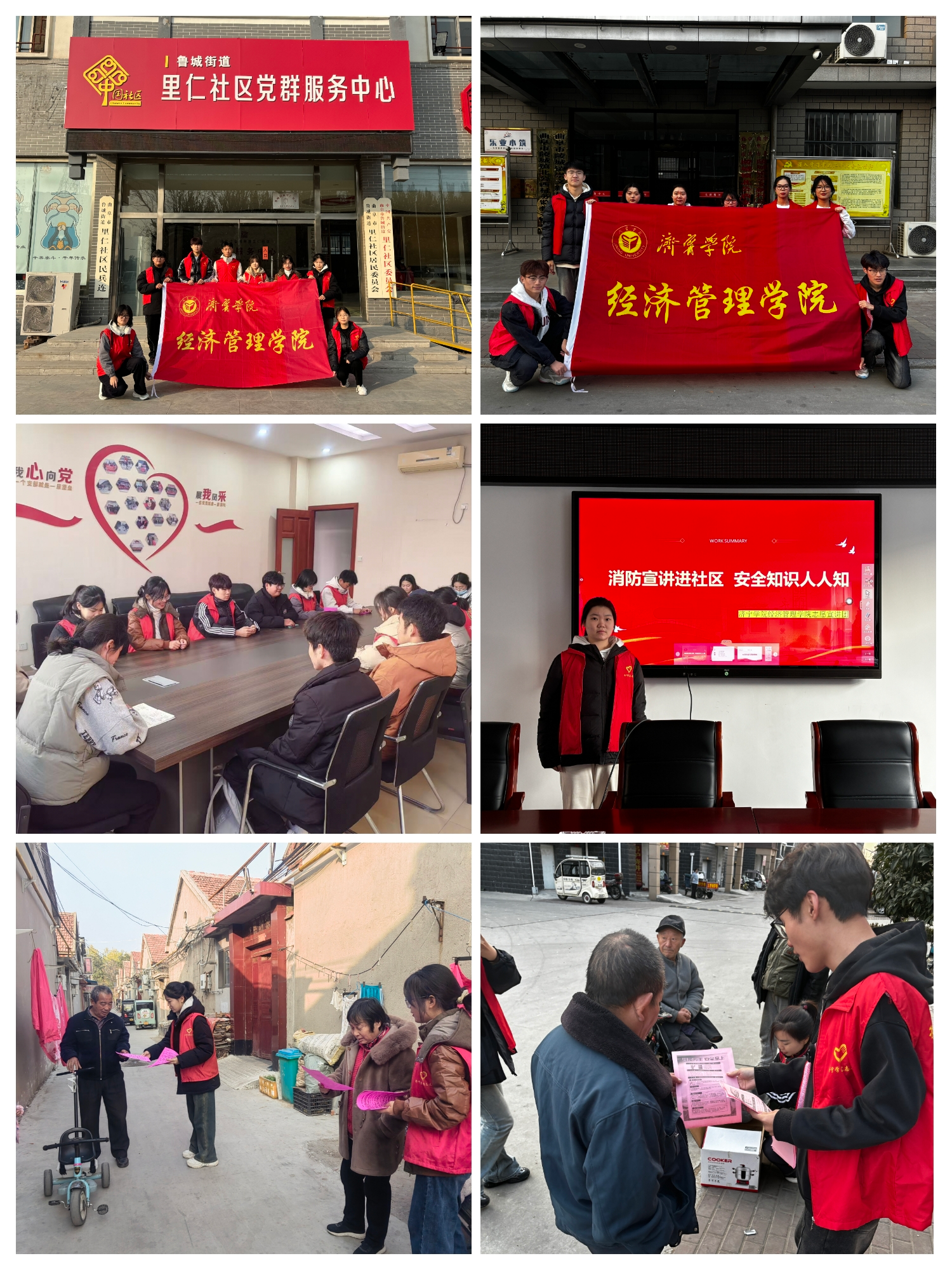 在鲁仁街道里仁社区,志愿者们开展了燃气安全和防范一氧化碳中毒宣传。在工作人员的带领下,志愿者们深入居民家里对燃气取暖、安全用电、一氧化碳中毒等隐患问题进行排查,并以检查发现的问题为重点进行安全知识讲解宣传,护航社区居民安全、温暖过冬。在崇文社区,志愿者们面向居民开展“消防安全进社区,安全知识人人知”宣讲,并通过走街串巷、进门入户,重点面向独居老人普及消防安全知识,排除消防安全隐患,讲解防火知识、急救方式和注意事项。