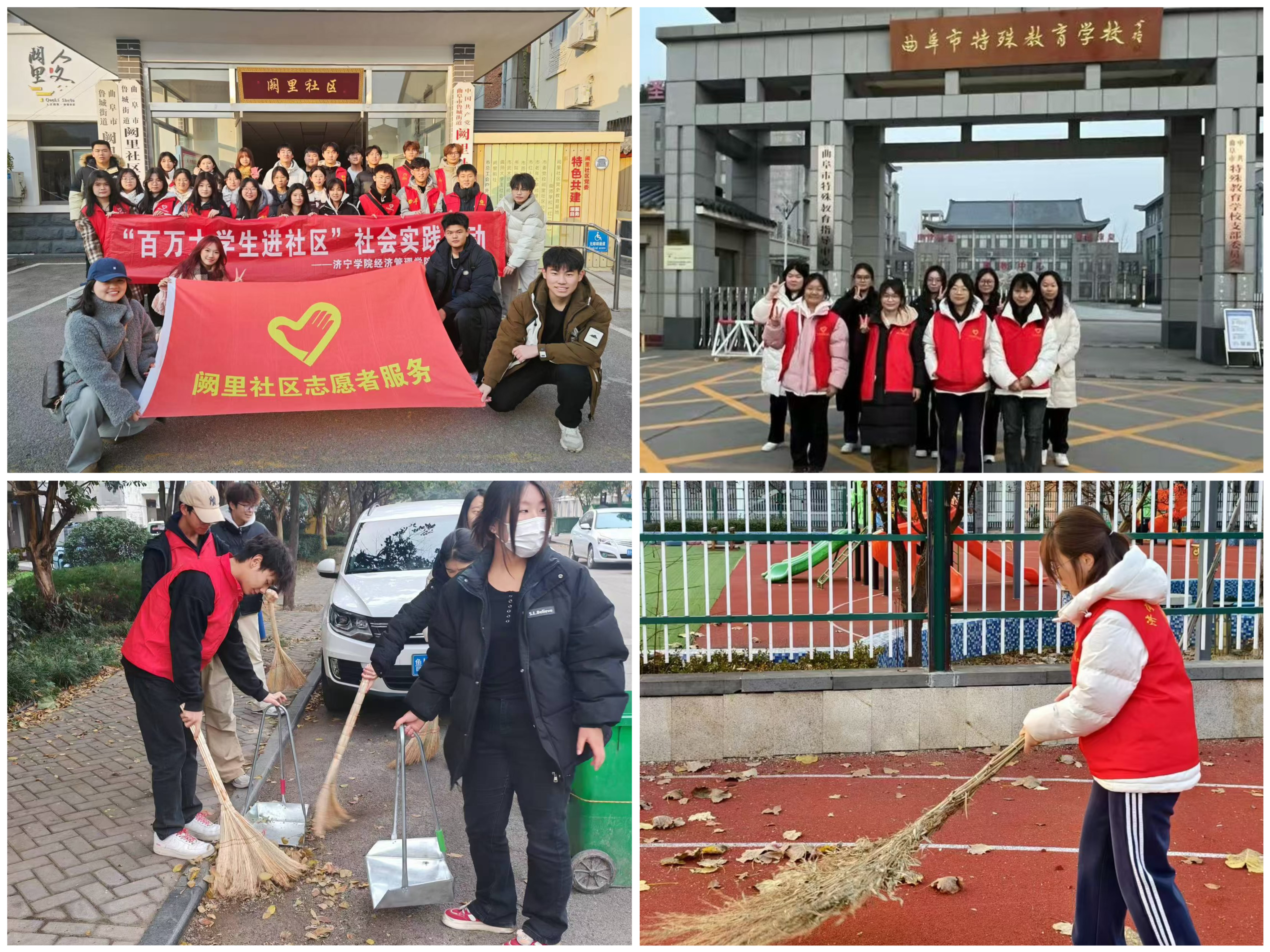 为应对近期气温逐渐下降、树叶大量飘落的情况,志愿者们走进阙里社区、特殊教育学校等地开展环境卫生清理服务。志愿者们重点对社区、校园道路上的枯枝落叶等杂物进行彻底清理,有效减少落叶积存,确保路面整洁干净,最大限度消除安全隐患,用实际行动传递文明新风,助力社区、校园构建和谐有序、整洁美观的良好环境。