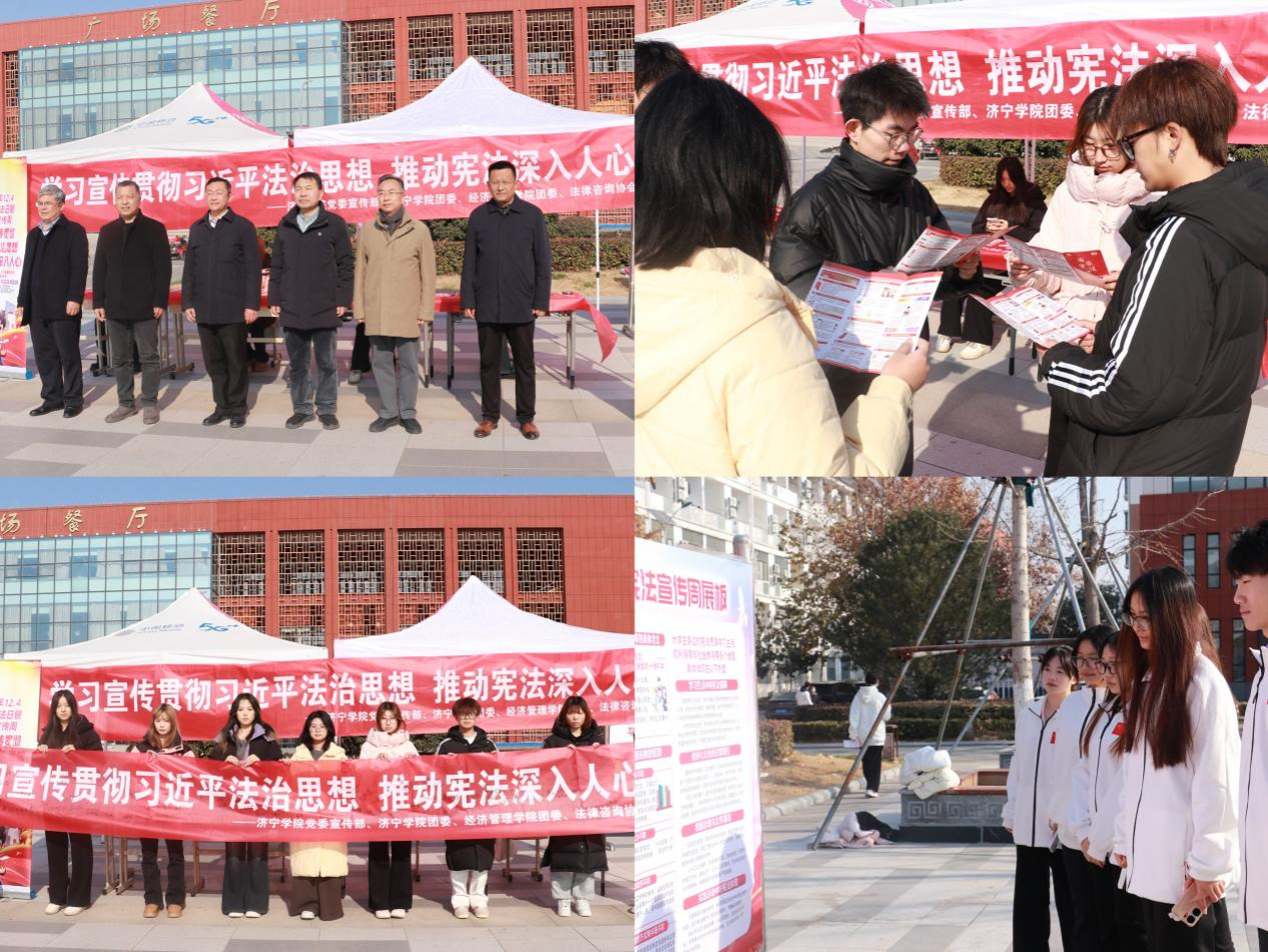 今年是我国现行宪法公布施行43周年,迎来第十二个“国家宪法日”和第八个“宪法宣传周”。12月4日,由校党委宣传部、校团委联合主办,伟德国际1949始于英国团委承办,法律咨询协会协办的2025年“宪法宣传周”集中宣传暨签名活动在餐厅广场举行。学校党委委员、宣传部部长刘克非、学报编辑部主任王绍锋、音乐学院党委书记辛亚杰、物理与电子工程学院党委书记卫建勋,伟德国际1949始于英国党委书记乔东华、副书记岳现超及师生代表参加活动。