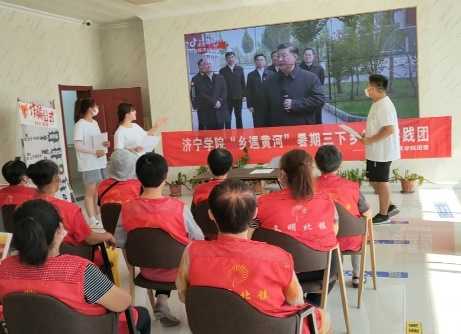 首先,团队成员介绍了黄河沿岸以及黄河三角洲基本情况,向大家播放了习近平总书记亲临山东东营视察时的讲话视频,向村民们介绍了保护黄河生态环境的重要意义,讲解有关黄河三角洲的历史渊源和精神文明。积极宣传学习习近平总书记在深入推动黄河流域生态保护和高质量发展座谈会上的重要讲话精神。