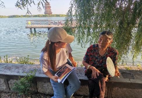 在蒲湖公园一站,队员们采访了公园里的游客和休憩的本地人,并向他们了解了蒲湖附近的乡村振兴的方式成果,还了解到黄河记忆和黄河文化等。在交谈过程中队员们不仅了解了当地的乡村振兴方式和现阶段已经取得的效果,还深深地感受到了生活在黄河沿岸居民的热情。