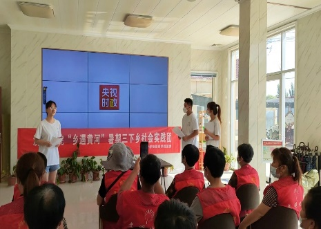第三天下午,实践团到达了北镇办事处黄河的沿岸村庄社区党群服务中心,深入三角洲,走进社区,化身为“宣传大使”,向村民讲述底蕴深厚的“黄河故事”,以实际行动传承黄河文明。