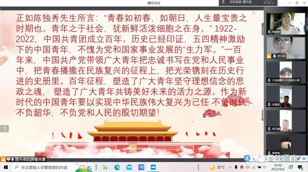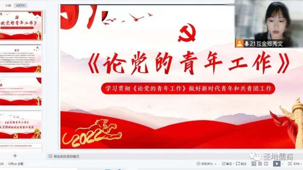 为深入学习领会习近平总书记关于青年工作的重要论述,儒商学院面向2021级全体同学开展“把青春播撒在民族复兴的征程上——学习习近平《论党的青年工作》”主题团日活动。