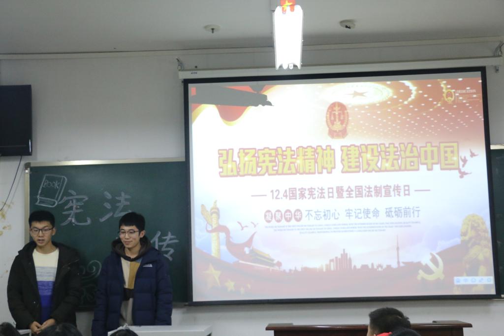 2019年12月8日晚,法律咨询协会成员带着宪法知识走进经济与管理系(儒商学院)各班,主讲了“弘扬宪法精神,推进国家治理体系和治理能力现代化”宪法宣传日主题团日,旨在进一步增强同学们法制观念,推动同学们树立宪法意识。