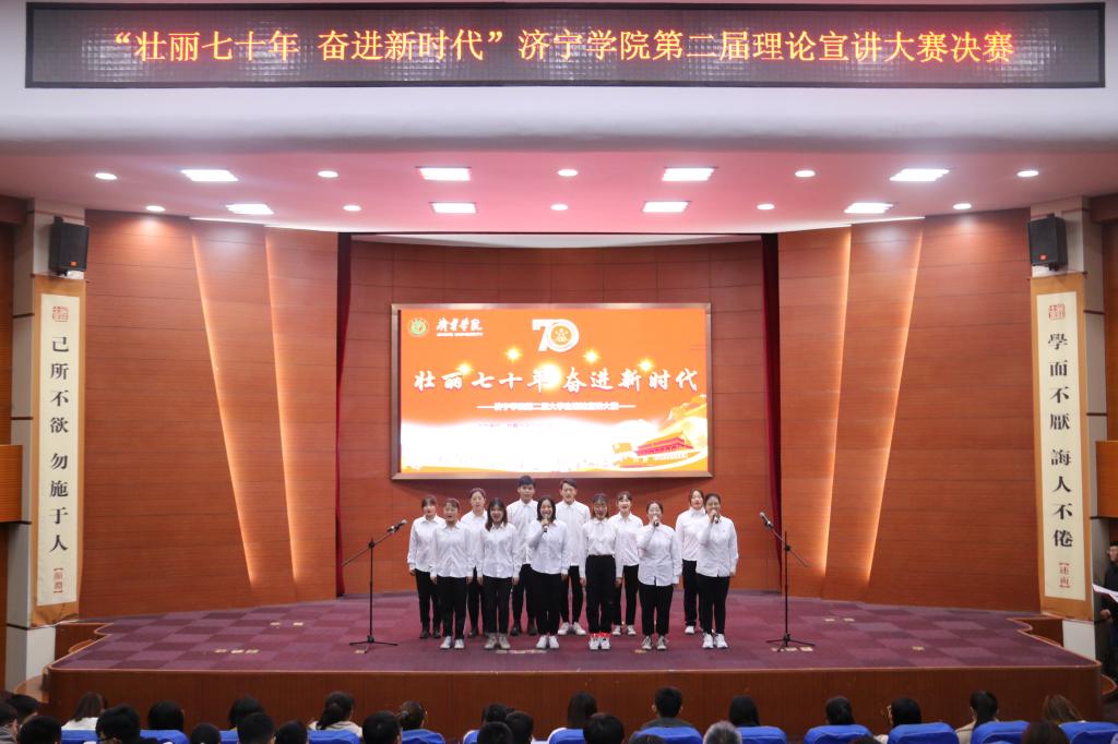 本次理论宣讲大赛紧扣庆祝中华人民共和国成立70周年主题,从预赛53组队伍中脱颖而出的13组宣讲选手,以新时代青年的视角和话语体系,讲述了国家重大建设成就、民族历史文化发展、城乡社会面貌巨变、人物和家庭故事等内容,生动展现70年来新中国从站起来、富起来到强起来的伟大飞跃,反映党的十八大以来党和国家事业取得的历史性变革和历史性成就,以及社会变迁、个人生活变化、难忘记忆、感悟等。选手们的宣讲充分展现了新中国成立以来国家给人民群众带来的获得感和幸福感,以及新时代青年大学生“青春、责任、梦想、奉献”的价值追求和精神风貌。在紧张激烈的角逐后,经济与管理系(儒商学院)郭留爽同学获得本次比赛冠军,学前教育学院张灿玉、音乐系代林颖等、经济与管理系(儒商学院)闫志伟同学获得亚军。