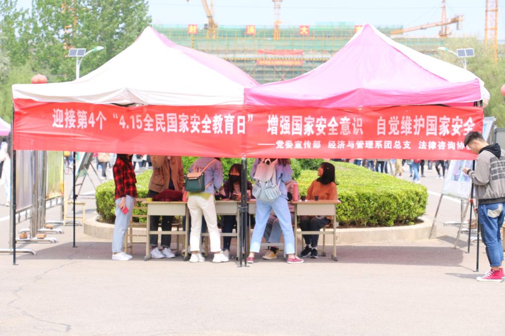 系列活动期间,学校组织师生同上一堂国家安全教育课,邀请济宁市国家安全局副支队长郭德平作了题为“增强国家安全意识,防范抵御颜色革命”的报告,引导青年大学生要坚定理想信念、筑牢思想防线,提高政治站位,提升应对风险能力,切实守住国家安全底线。经济与管理系团总支开展国家安全教育主题班会、青年宣讲团进支部宣讲、主题演讲比赛等活动向同学们讲授国家安全知识,深入推进安全意识入脑入心。在校园内,整齐陈列着“维护国家安全,共筑钢铁长城”的专题展览,吸引了过往师生驻足观看。展板前,经济与管理系法律咨询协会的师生设立了普法宣传台,现场为同学们进行国家安全相关法律知识的讲解。同时利用条幅、电子屏幕、黑板报、校园网站和微信平台等媒介广泛宣传普及《国家安全法》《网络安全法》《反恐怖主义法》《核安全法》等国家安全法律法规,营造了依法维护国家安全的浓厚氛围。