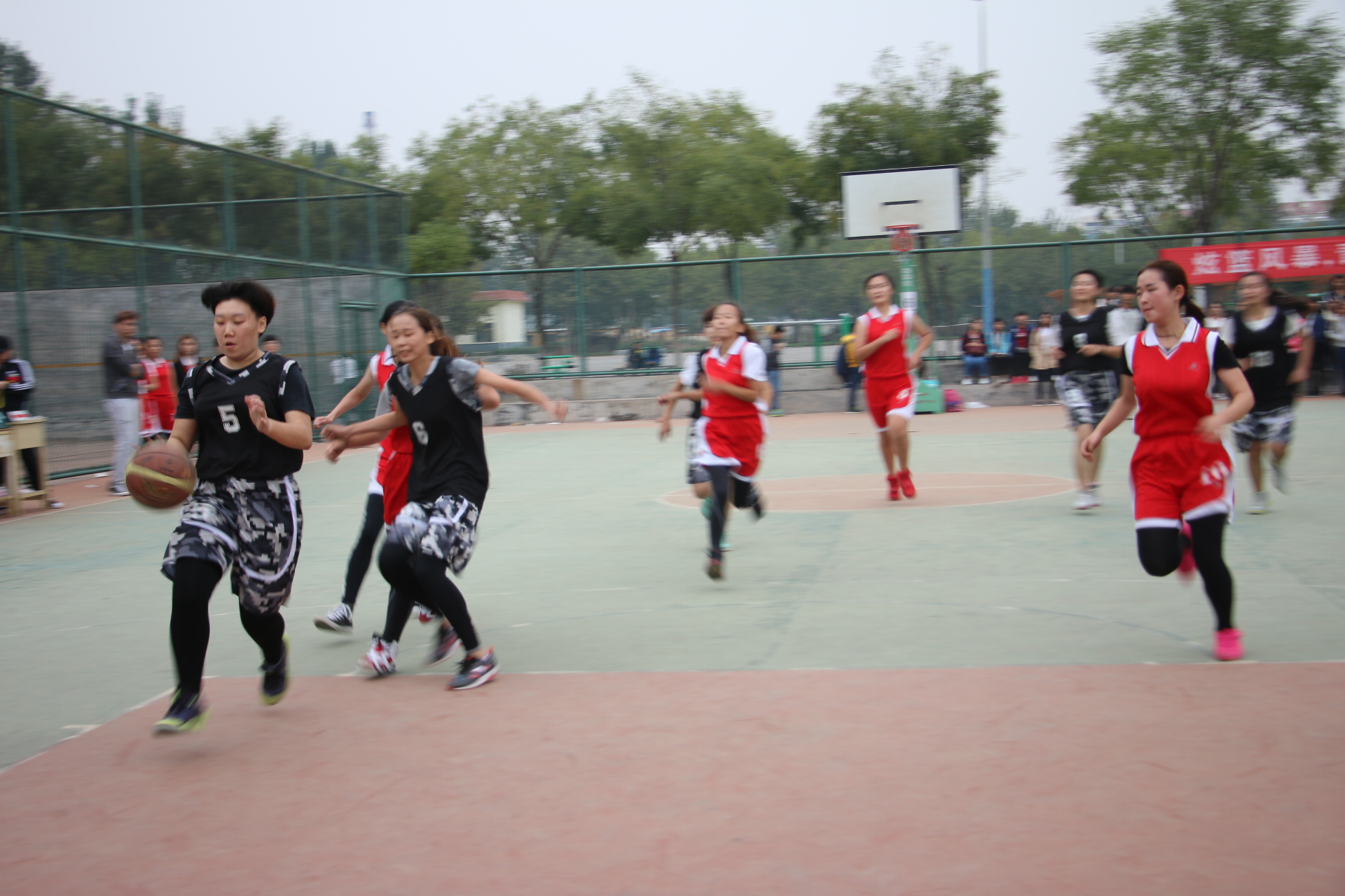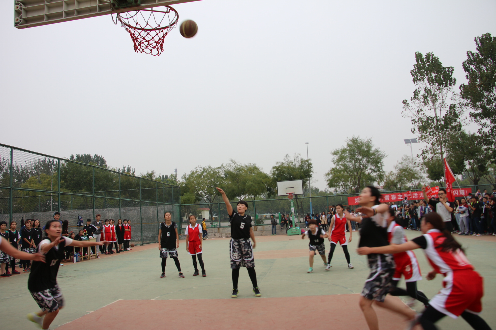 随着一声哨响,经济与管理系和文化传播系的队员们开始了激烈的比赛。领先队伍一个个精彩的传球,两系队员们一个又一个完美的配合让在场的同学们欢呼不已。落后的队伍也毫不逊色,不断地调整自己的战略战术,展现出永不放弃的精神。最后我系男女篮各以大比分的绝对优势赢得了本次比赛。