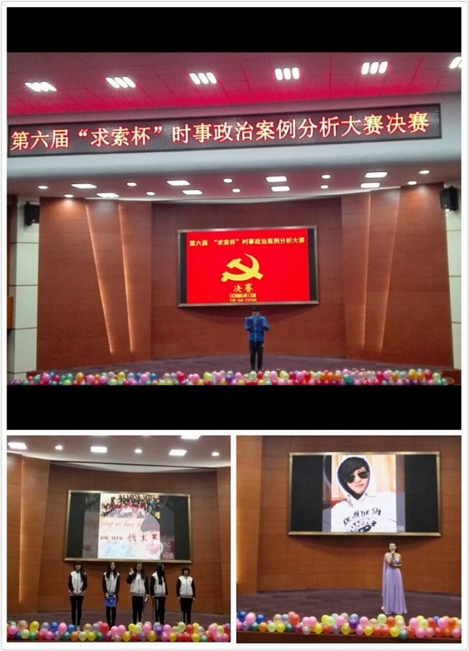 2015年12月14日晚7:00,由经济与管理系青年马克思主义者研究会承办的第六届“求索杯”时事政治案例分析决赛在理科楼报告厅举行,各学生代表和2015级全体学生参加此次活动。