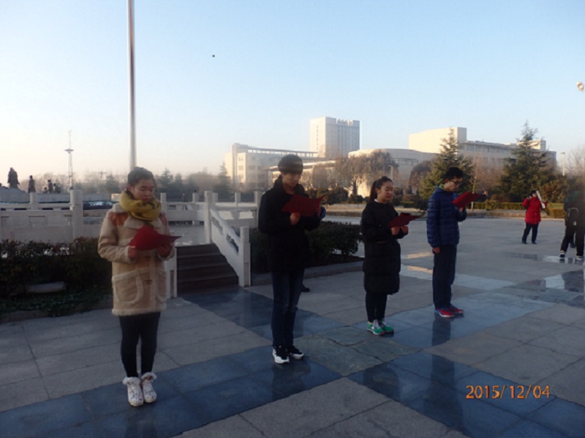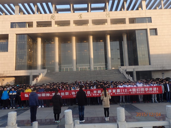本次宣传日系列活动以“弘扬宪法精神,推动创新、协调、绿色、开放、共享发展,12.4我们携手并进”为主题,重点宣传深入学习宪法,党的十八届五中全会精神及中国特色社会主义法律体系。仪式开始,首先由领誓人宣读誓词,介绍了开展法制宣传日的原因及重要性,解释了宪法在我国社会生活中的重要地位,随后领誓人带领同学进行了庄严地宣誓,同学们无不声音洪亮,铿锵有力,表达出了维护法制,遵守法律的坚定决心。