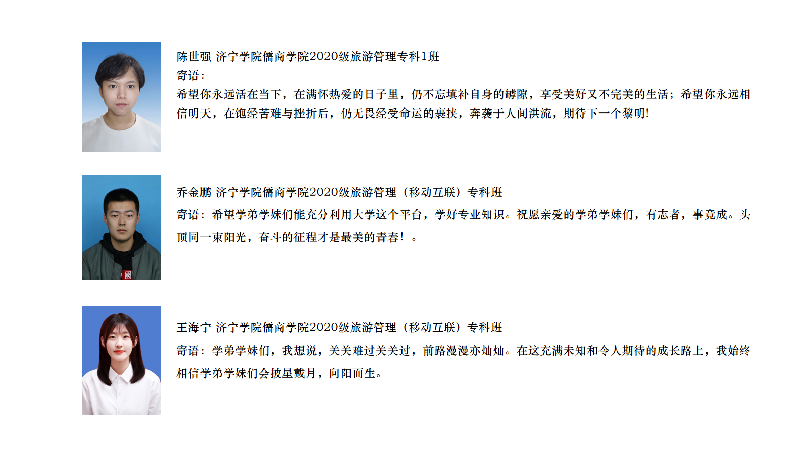 青春是石,敲出星星之火;梦想是火,点燃暗夜的灯;努力是灯,照亮独行的路;勤奋是路,引你走向黎明。风雨兼程,于畏途之中顾盼英武身姿;勇敢追梦,于学海之中见证弄潮英雄。精进不休、品学兼优是他们,但求奉献、不求流芳是他们,初心依旧、拼搏进取也是他们,他们几年如一日,用赤子之心谱写着青春诗篇,在最美的年岁里恣意绽放。下面就让我们一起走进他们——儒商学院2023年省优秀毕业生,走进他们限定的青春!