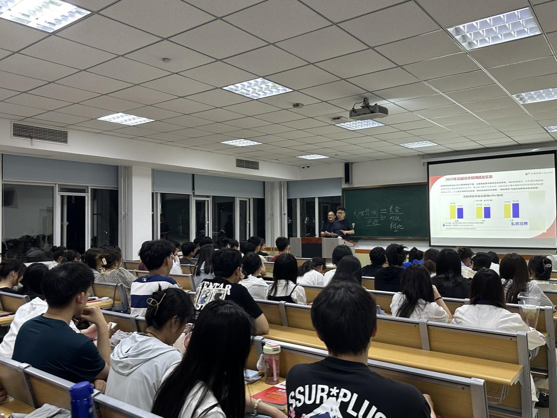 宣讲会上,徐纪元给2025届毕业生分析了当今就业形势的紧张性、激烈性,从毕业可能拥有的选择出发,仔细分析了影响决策的因素,他用详实、生动、具体的数据对本校的考公考研形势、就业形势进行分析,引导同学们深入思考如何正确决策。并针对考研同学强调了最新的考公考研报考政策、报考时间安排等,鼓励同学们根据自身实际情况认真选择报考院校和岗位,并为之努力,积极备考。