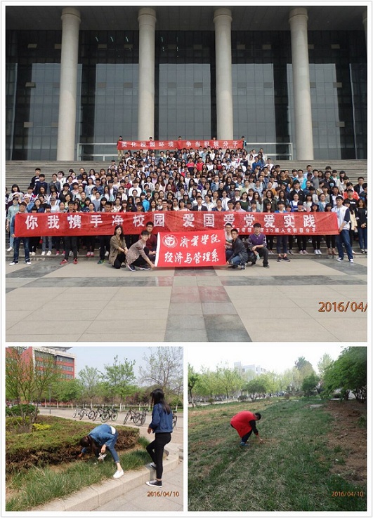 2016年4月10日上午10:00 ,为贯彻“全心全意为人民服务”的宗旨,经济与管理系第35期入党积极分子培训班全体成员在辅导员闫晓晓的带领下,于我校校园进行了美化环境的义务清洁活动。