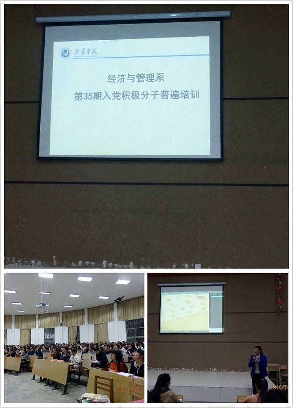 2016年4月6日晚7:00,经济与管理系第35期入党积极分子培训课第一课在报告厅举行。经济与管理系主任齐慧丽,党总支书记乔东华参加了此次培训课。