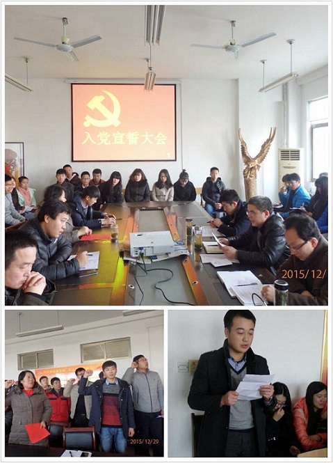 此次会议首先奏响《国际歌》,铿锵的歌声不仅响彻会议室,更把歌曲的深刻意义渗进了每一位党员的心里。党总支书记乔东华对如何做一名合格党员与同学们进行深入探讨希望全体党员能与党中央保持一致,做学生表率,加强自我要求。鲜红的党旗,庄严的宣誓,新党员抒发自己对党的忠诚的决心