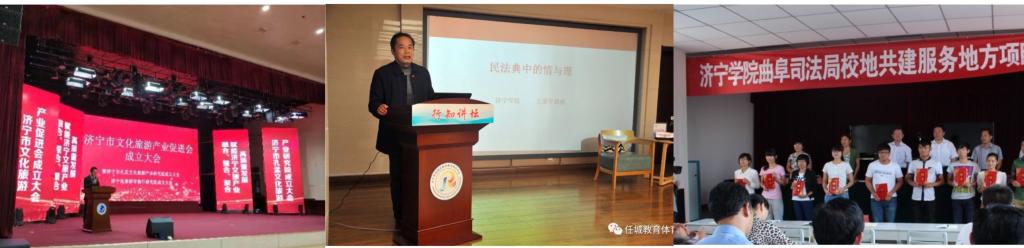 学院积极构建“政校企互动、产学研结合”生态系统的办学理念,主动适应本地行业和区域经济社会发展需求,发挥出应用型大学服务地方的应有作用。主动承担行业任务,选拔专业教师入选行业协会专家库,协助地方旅游、管理行业开展培训,累计培训2.36万人次,产生良好社会效益;编写《旅游安全管理实务——自查一本通》并印刷成册,指导地方旅游产业发展;承担曲阜市导游培训工作并制定了全年导游培训方案,拟组织实施“三孔”景区导游讲解规范、导游词提升工程;组建专家教授、博士团队连续4年深入鱼台地区调研经济发展、开展电商扶贫下乡,受到当地政府和群众的大力支持与欢迎。