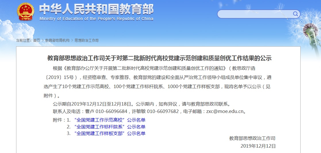 12月12日,教育部思政司发文公布了第二批全国党建工作示范高校、标杆院系、样板支部培育创建单位名单,经济与管理系(儒商学院)学生党支部入选“全国党建工作样板支部”。经济与管理系(儒商学院)党总支副书记赵家凯同志和学生党支部书记袁芬同志担任项目负责人。