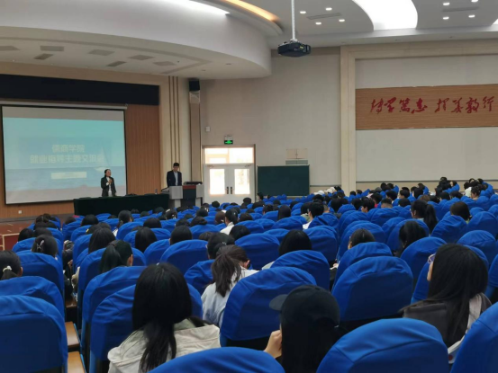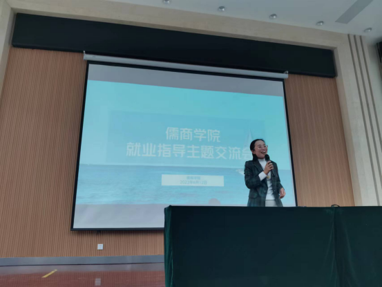 4月12日下午,儒商学院于3号楼102报告厅开展了就业指导主题交流会,儒商学院就业工作领导小组组长、院长霍雨慧主持,学院负责就业工作的辅导员以及400余名学生参加了本次交流会。