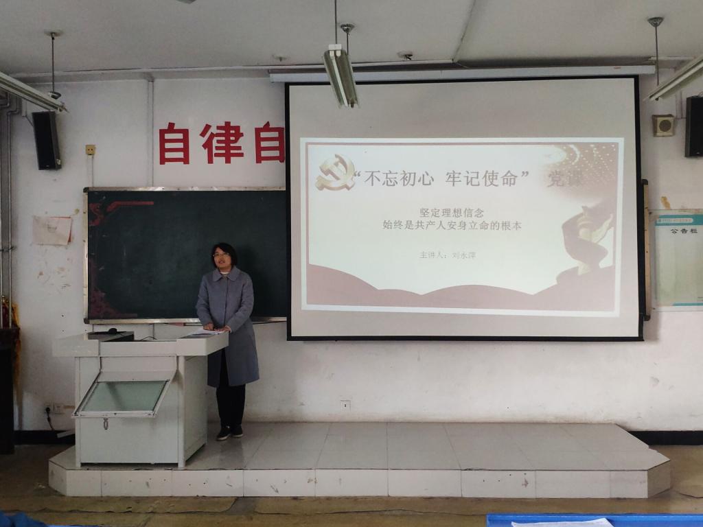 为落实“不忘初心、牢记使命”主题教育要求,扎实推进主题教育活动深入开展,11月13日,经济与管理系(儒商学院)于508教室举办“坚定理想信念”主题党课。教工党支部书记刘永萍主讲,全体教师参加。