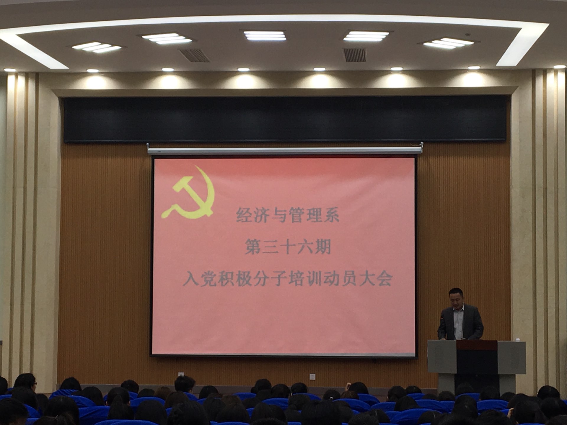 2017年4月13日晚,经济与管理系第36期入党积极分子培训动员大会在3号楼报告厅顺利召开,经济与管理系党总支书记陆波作学习动员。