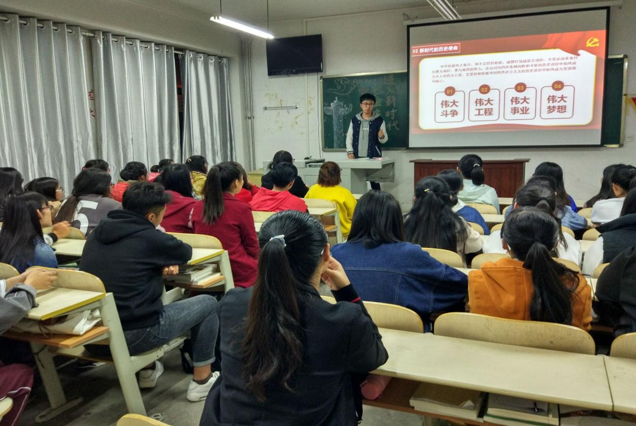 11月2日晚,青年马克思主义研究会走进经济与管理系班级团支部,开展了以“中国特色社会主义走进新时代”为主题的宣讲活动。青马研副会长张日新主持宣讲会。