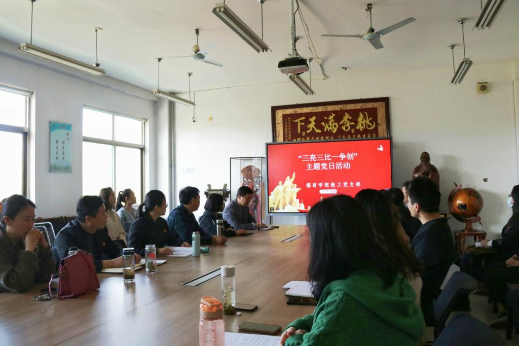 通过开展“三亮三比一争当”主题党日活动,进一步激发了全体党员内在动力,引导广大党员在转变作风、增强能力素质、提高工作效率等方面比学赶超、互学共进,更好担负起“走在前、作表率”重大使命,为我校实现建设应用型本科大学目标、开创学校改革发展的新局面作出新的更大贡献。