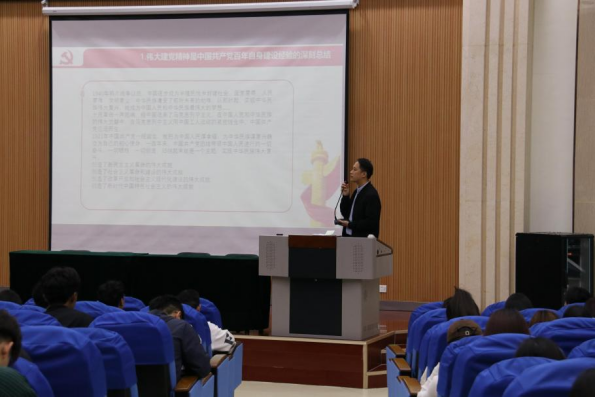 5月8日,儒商学院第四十二期入党积极分子在3号楼报告厅集中进行党课学习,学院学生第二党支部书记田亮为全体入党积极分子作了题为“伟大建党精神-中国共产党的精神之源”的专题党课。