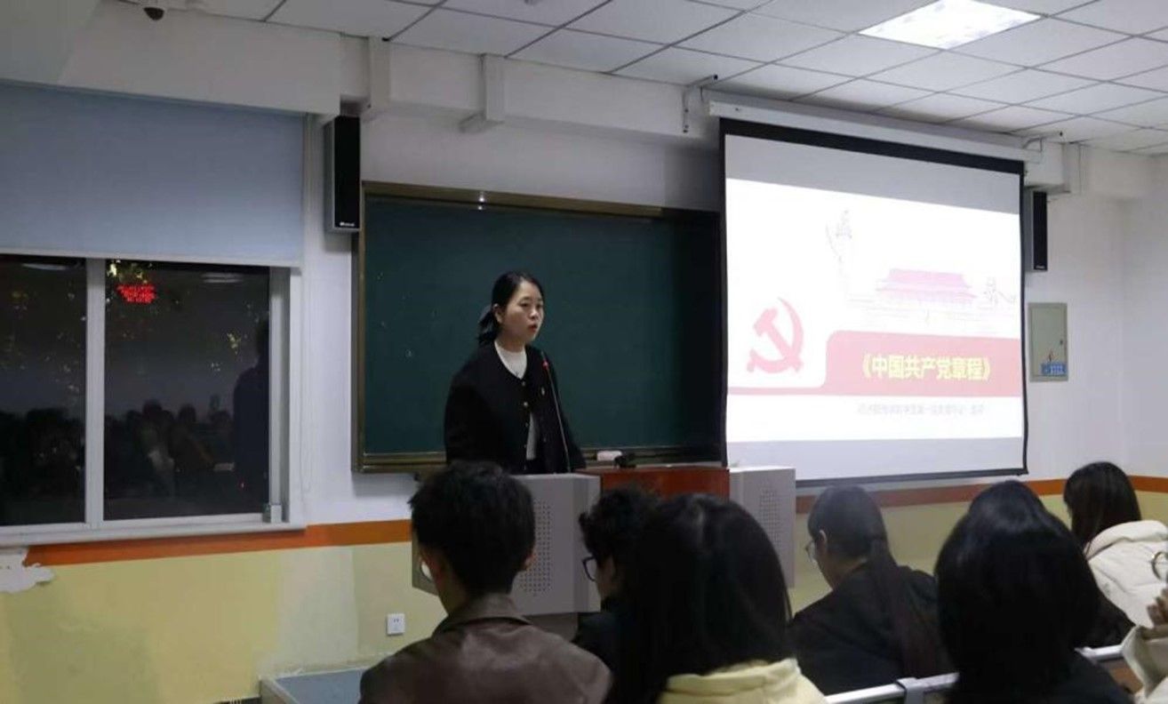 10月25日晚,伟德国际1949始于英国在3#B210开展第三十四期党员发展对象和第十八期预备党员培训活动,学生第一党支部书记袁芬带领参训学员深入学习研读《中国共产党章程》。