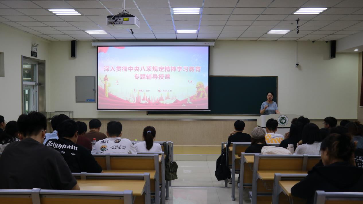 党课上,袁芬从中央八项规定精神的主要内容、违反中央八项规定精神主要表现以及违反规定适用的相关党纪条规等方面进行详细讲解。她强调中央八项规定不仅是对党员干部的约束,更是对全体党员的警示和教育;大学生作为国家的未来和希望,践行中央八项规定精神,不仅是对党的纪律和规矩的遵守,更是培养良好品德和作风的重要途径。激励学生党员要坚定理想信念,坚守学术诚信,务实担当,真抓实干,同时要在学习上追求卓越,主动帮扶同学,做到知行合一。